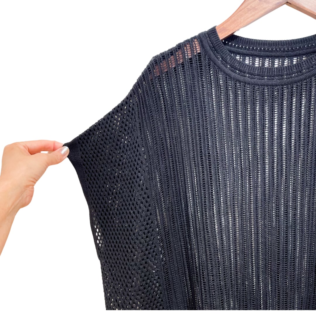 透かし編みニットプルオーバー ホワイト、チャコール、ブラック 835635 (ayane)
