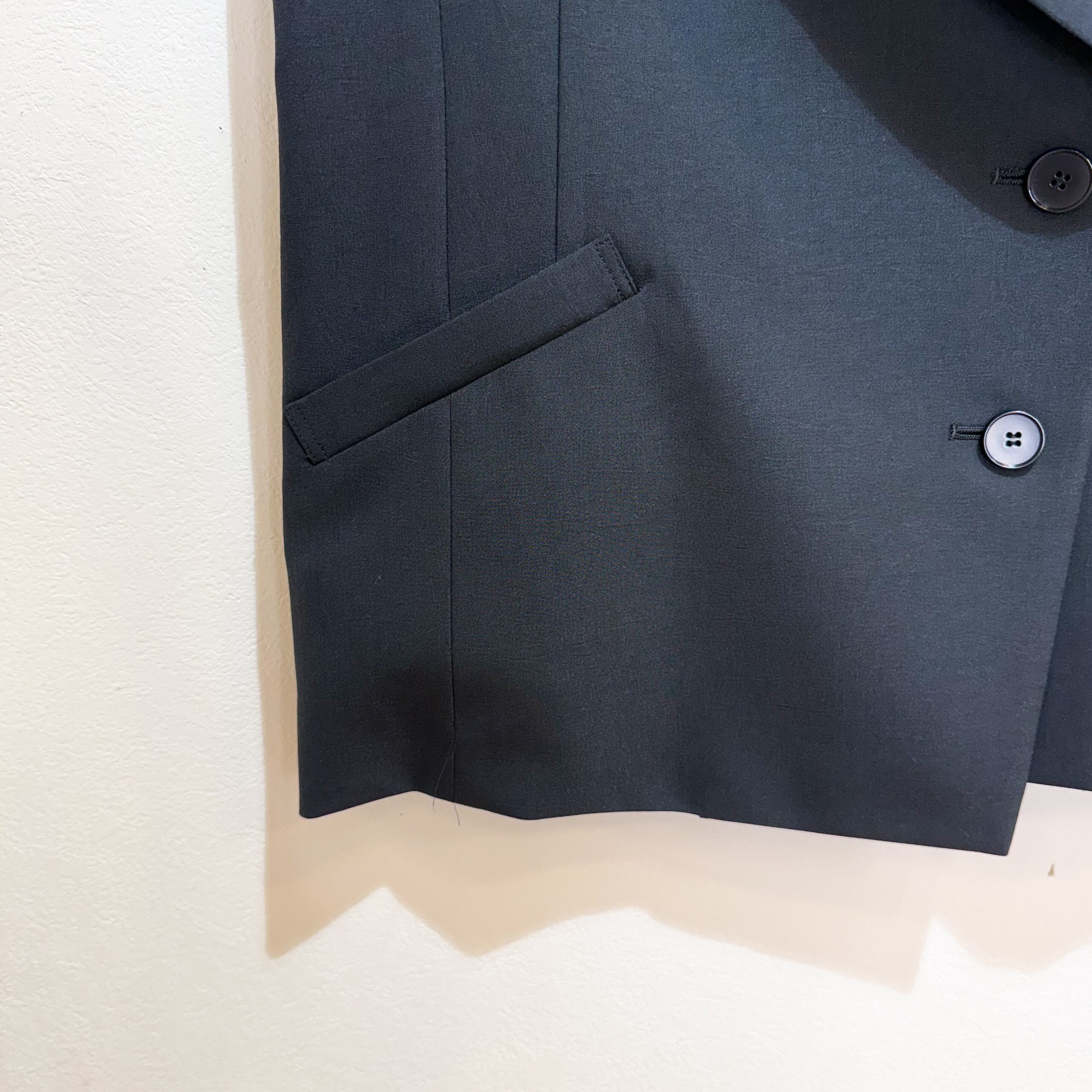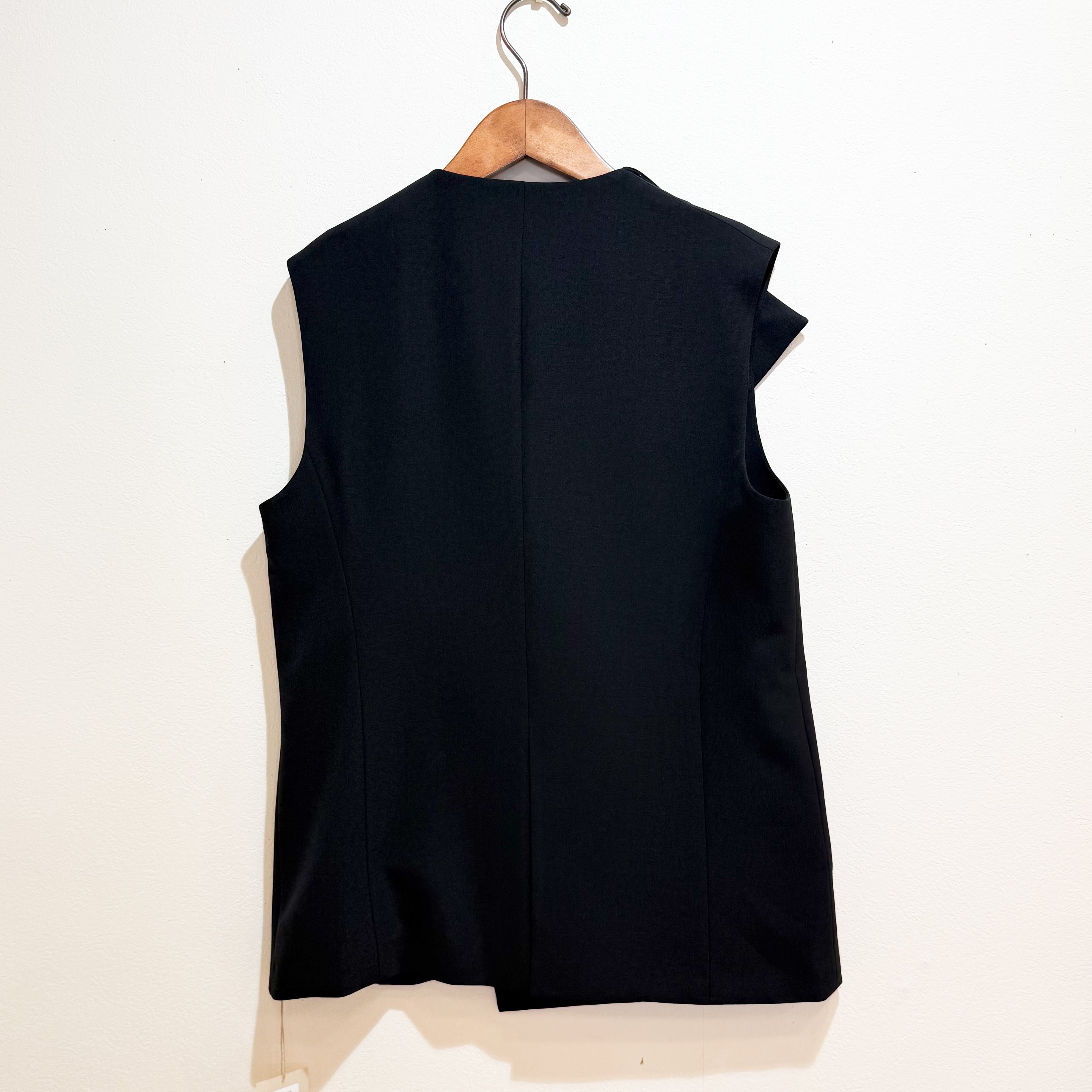 ウールライクな素材感が特徴のアシンメトリーベストです。