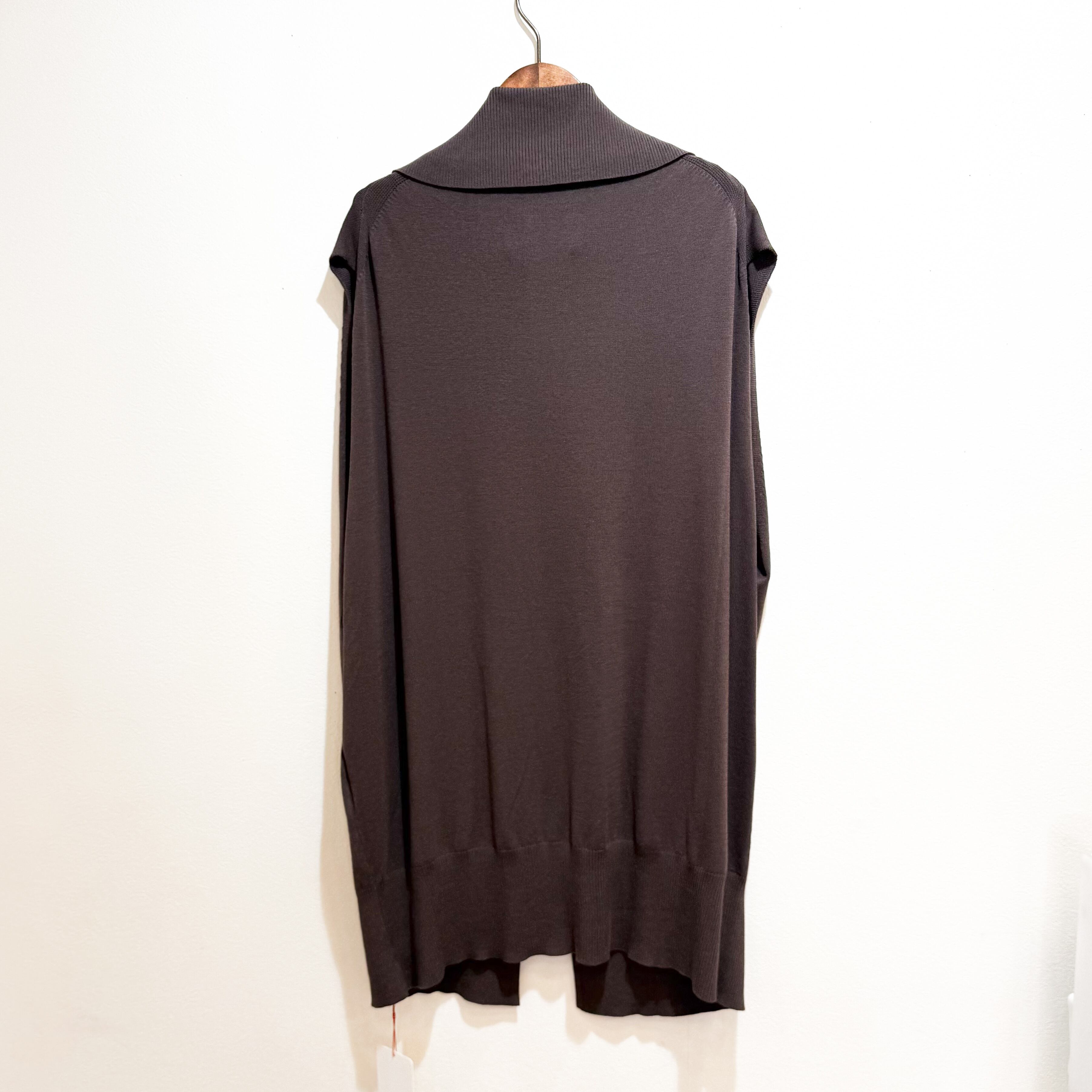 大きく開けた袖口はスッキリ見えの編み立てを施しつつ、袖ラインは女性らしい優雅なシルエット設計。