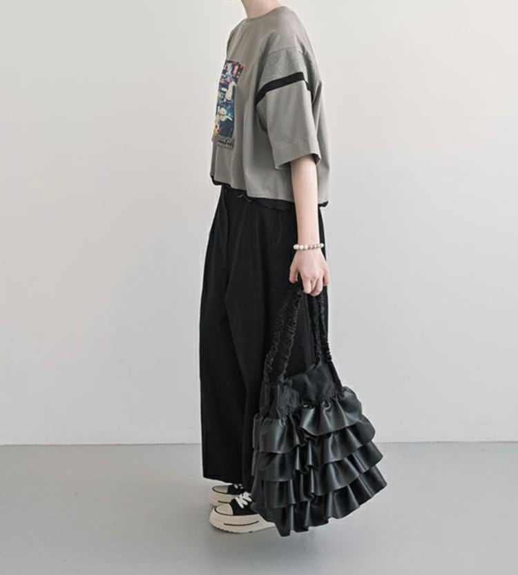 ボリュームのあるトップスや、ショート丈のニットや羽織りなど、様々なアイテムと合わせてアレンジできるため、コーディネートの幅が広がります。