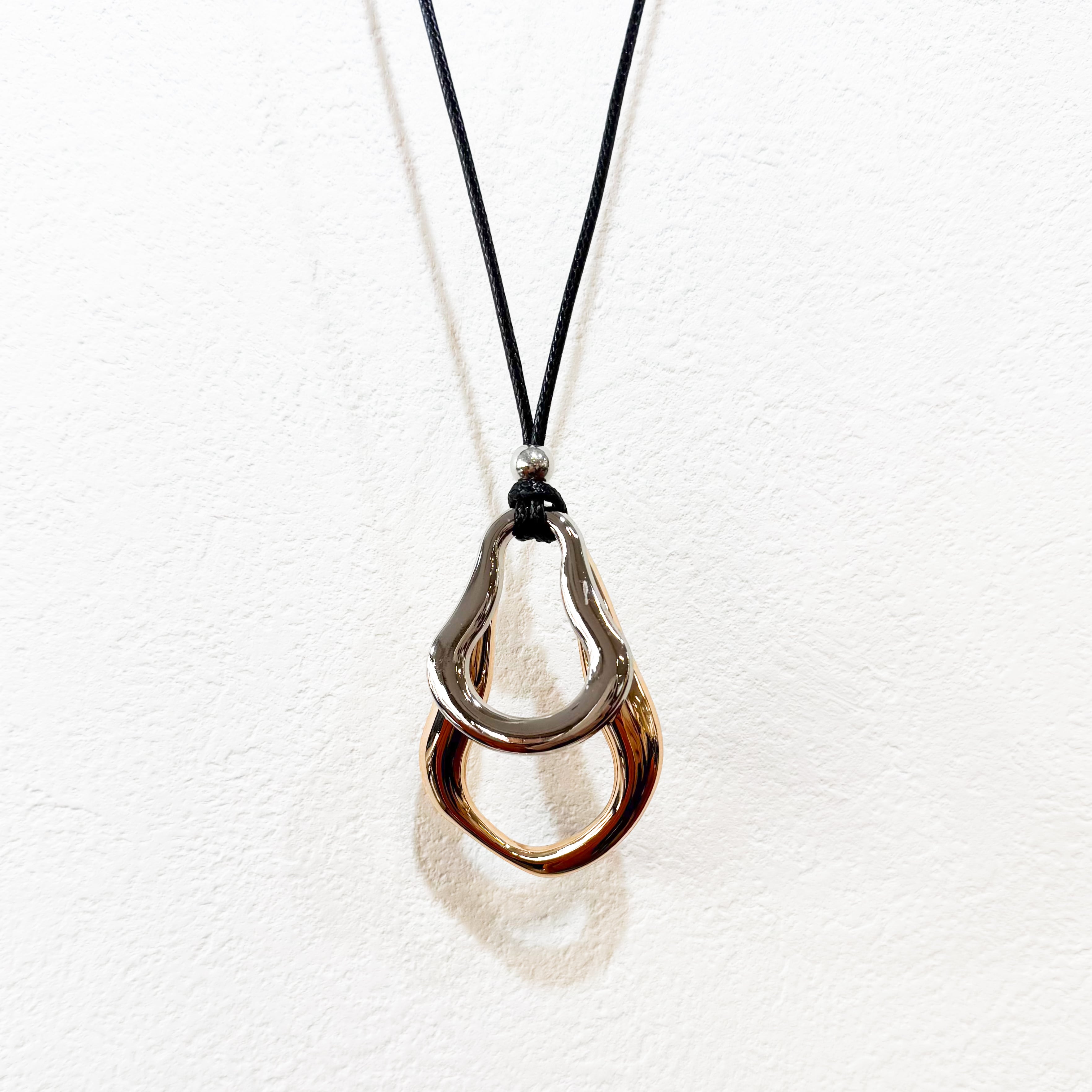 洗練されたデザインの変形ドロップバイカラーネックレス。