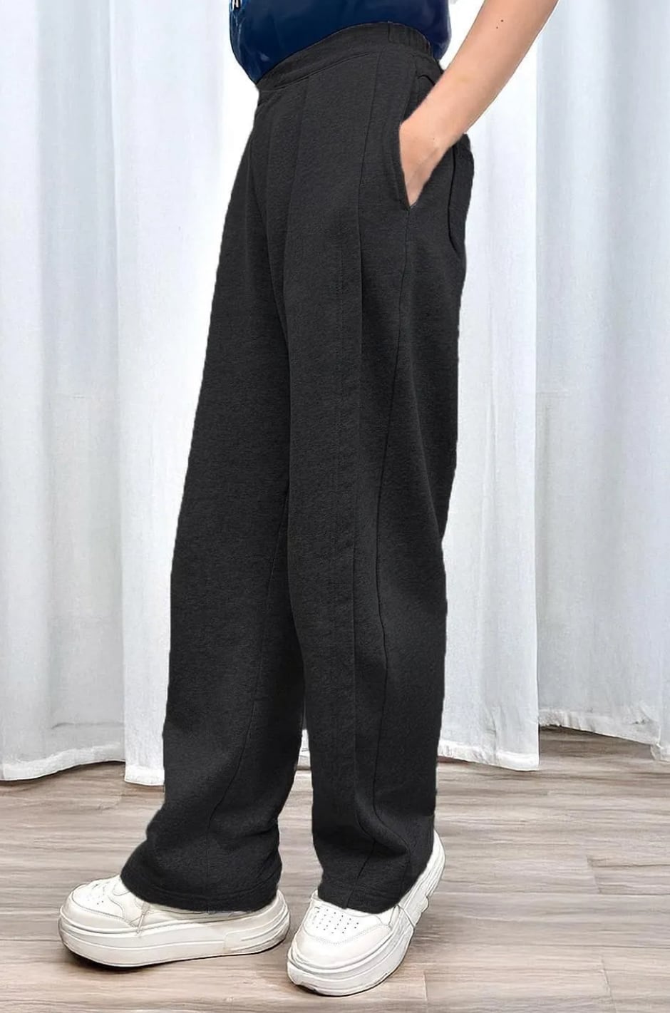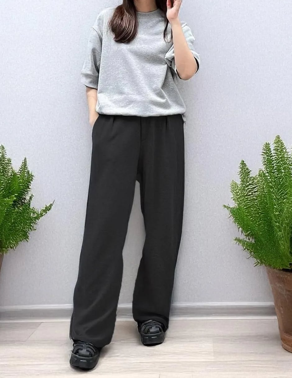 綿100%で肌ざわり抜群、ゆったりとしたカーブシルエットパンツ。