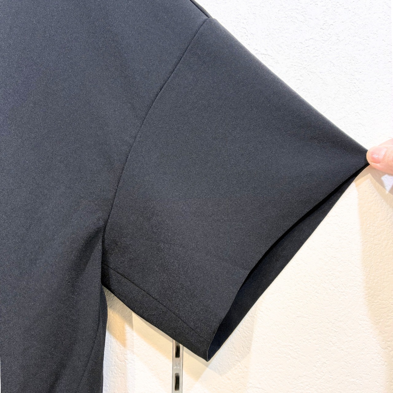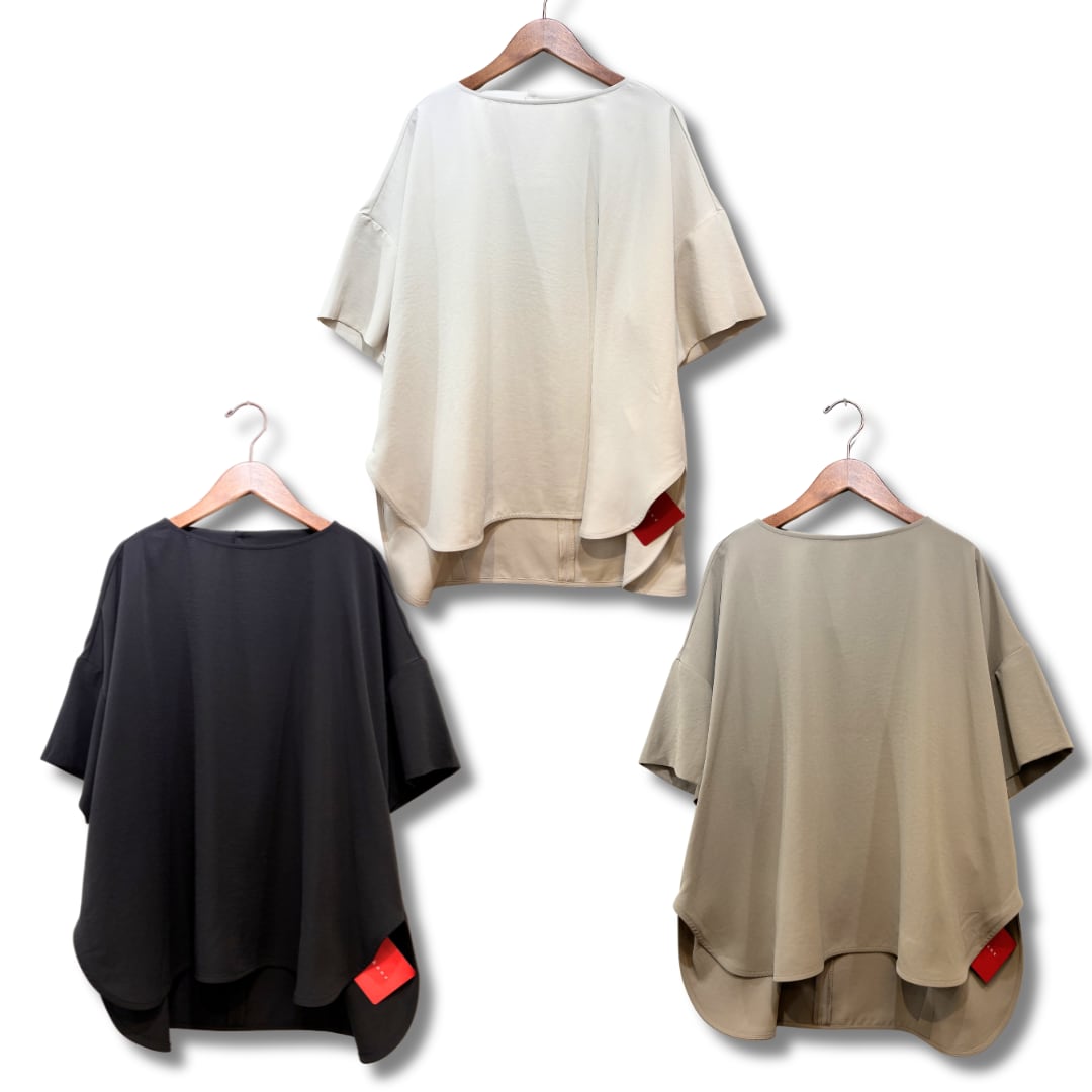 ポリエステル100%ながら縦横に伸縮性があり、肌離れもよくストレスフリーな着心地です。