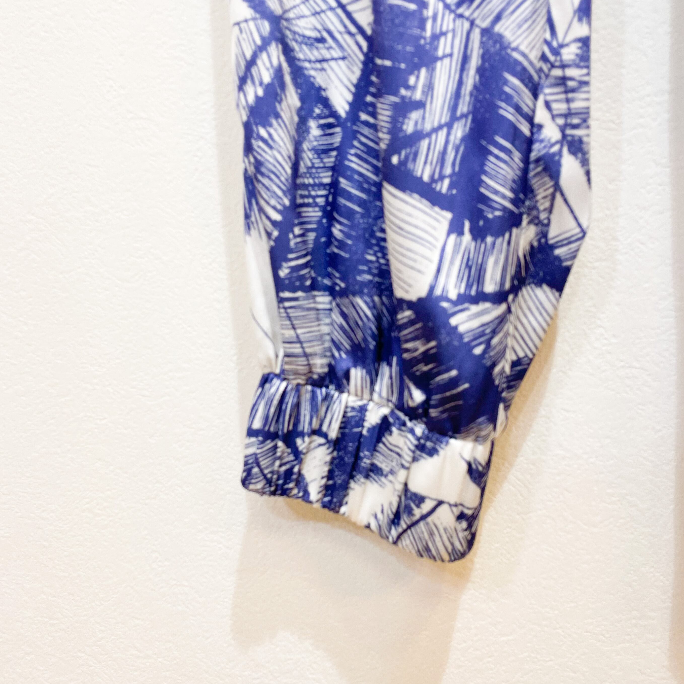 幾何学風のリーフ柄が美しいジョガーパンツです。トレンドのジョガーパンツでありながら、ウエストゴム仕様で履き心地も抜群。