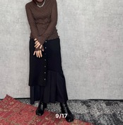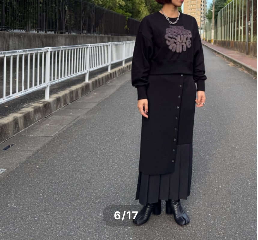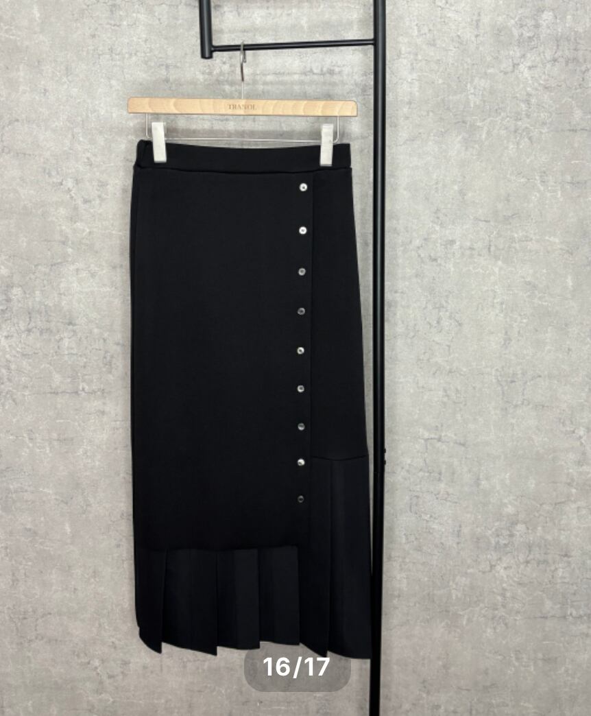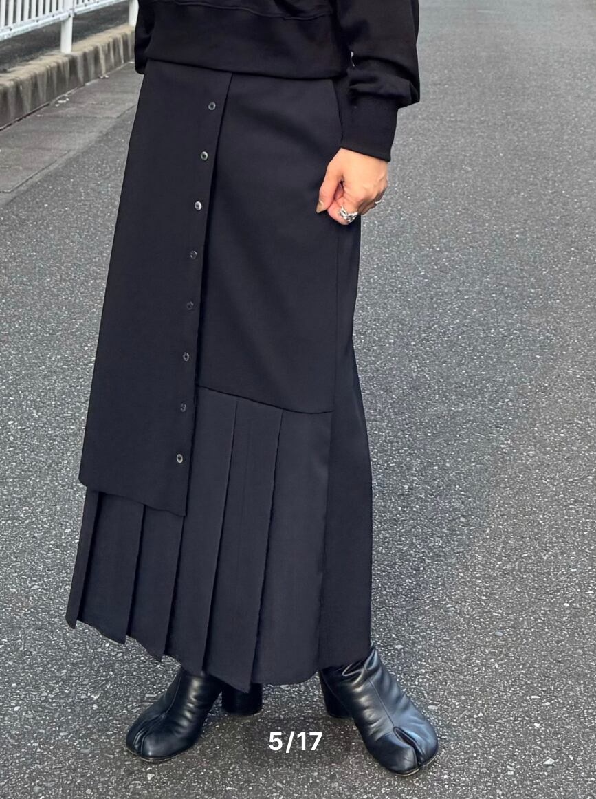 プリーツドッキング タイトスカート ブラック(TRANOI)